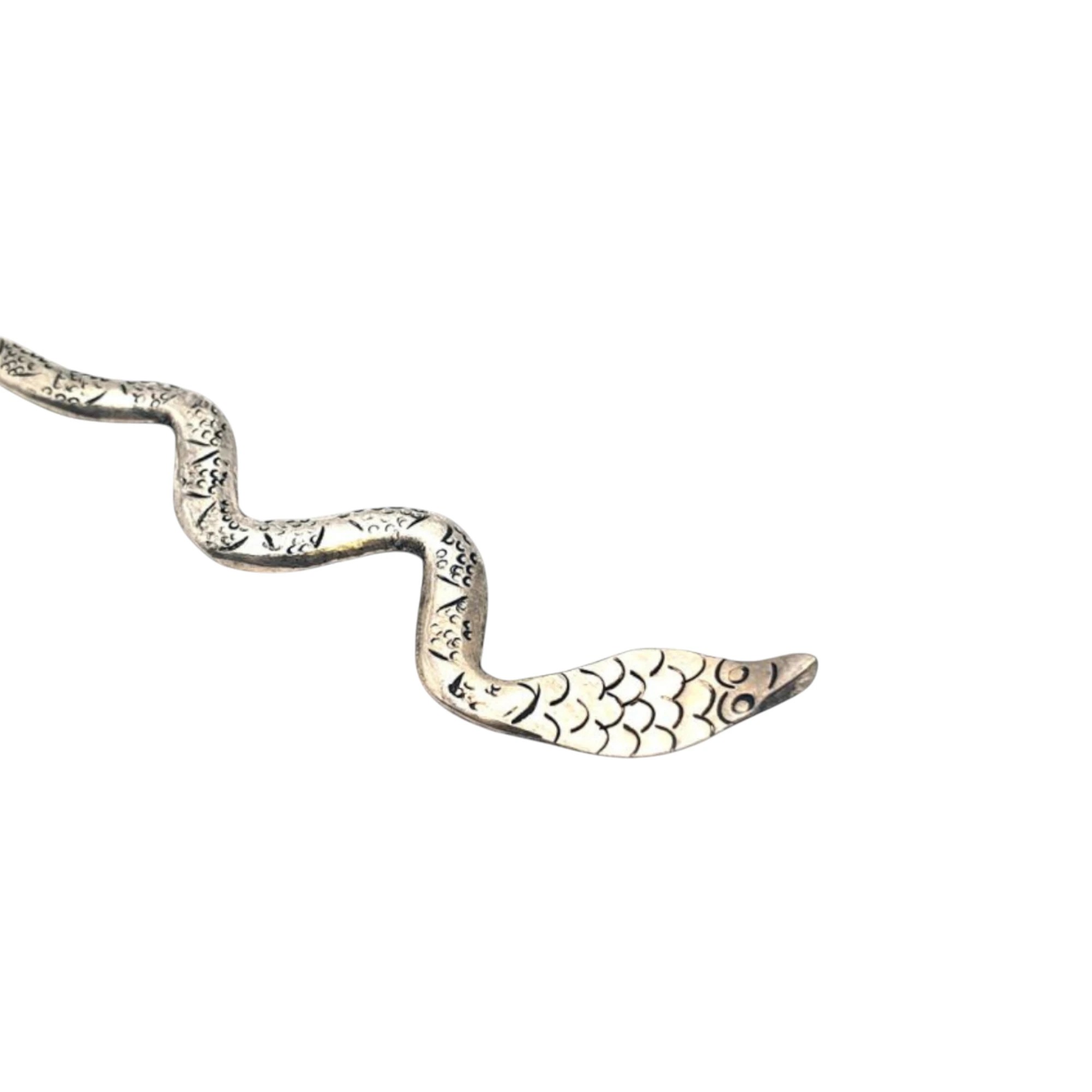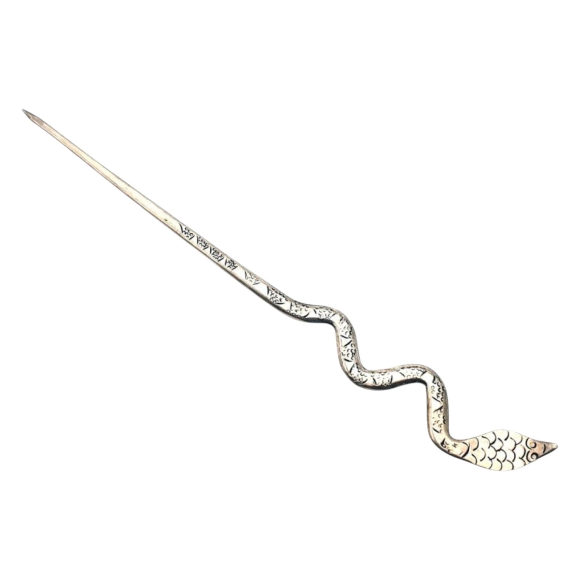 Ajoutez une touche d’élégance et de symbolisme à vos coiffures grâce à ce pic à cheveux japonais fait main, orné d’un motif serpent. Réalisé en cuivre blanc (90 %) et en argent (moins de 10 %), il combine solidité et finesse.