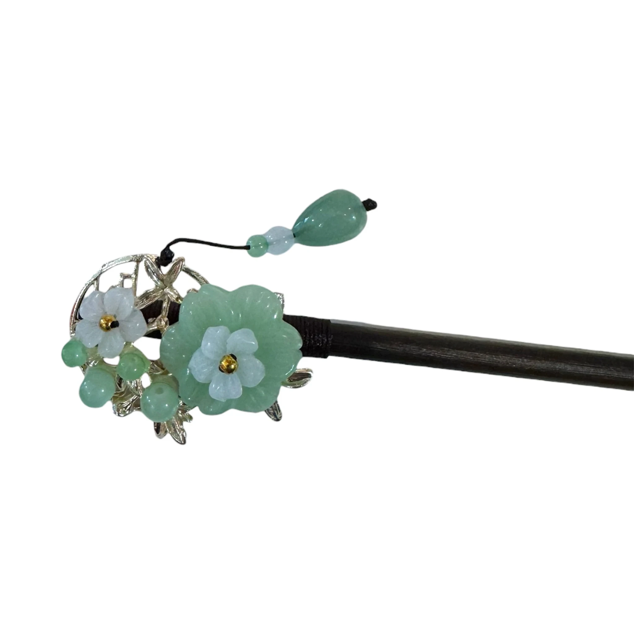 Un pic à cheveux japonais élégant aux fleurs vertes et blanches