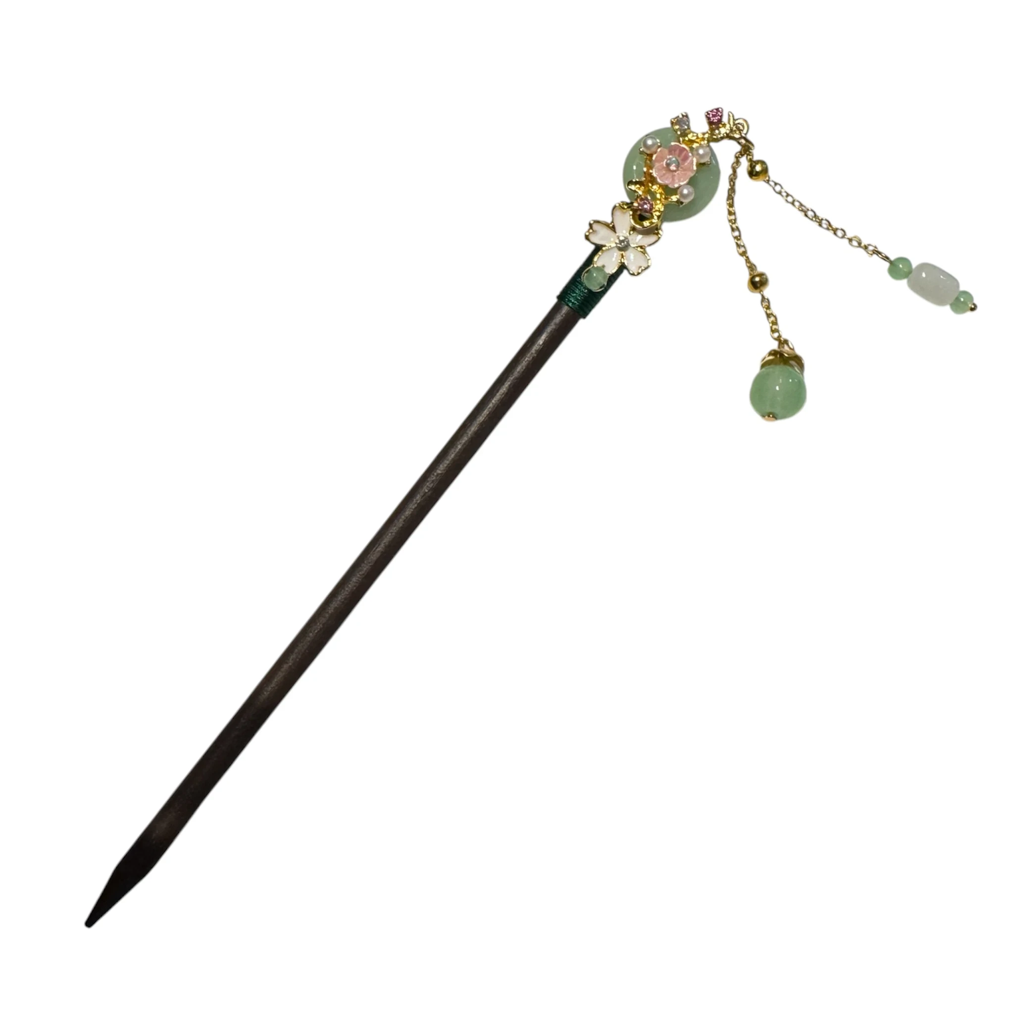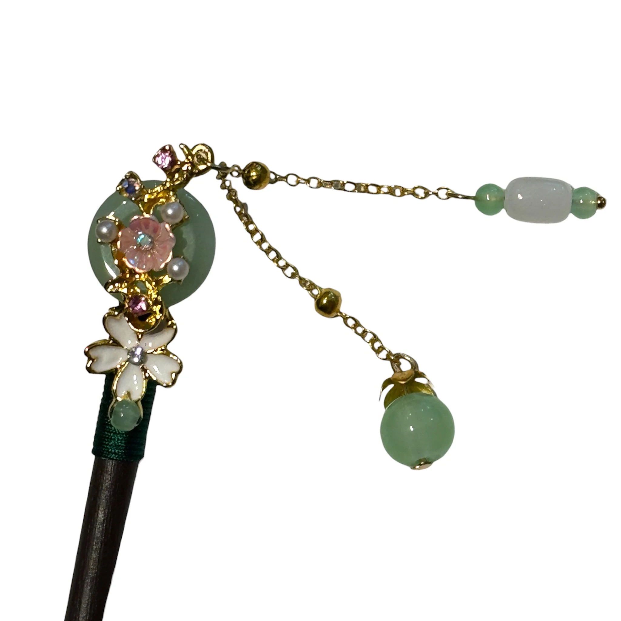 Avec son coloris marron pour la tige et ses nuances vertes, roses et dorées, cet accessoire peut se porter aussi bien avec une tenue japonaise traditionnelle qu’avec un style du quotidien.