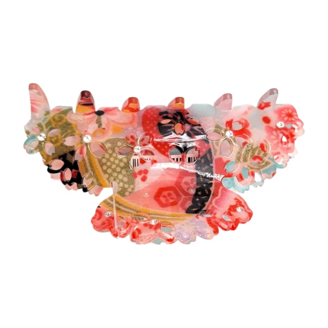 La pince crocodile japonaise Sakura en chirimen est un accessoire pour cheveux raffiné, inspiré de l’esthétique japonaise traditionnelle.