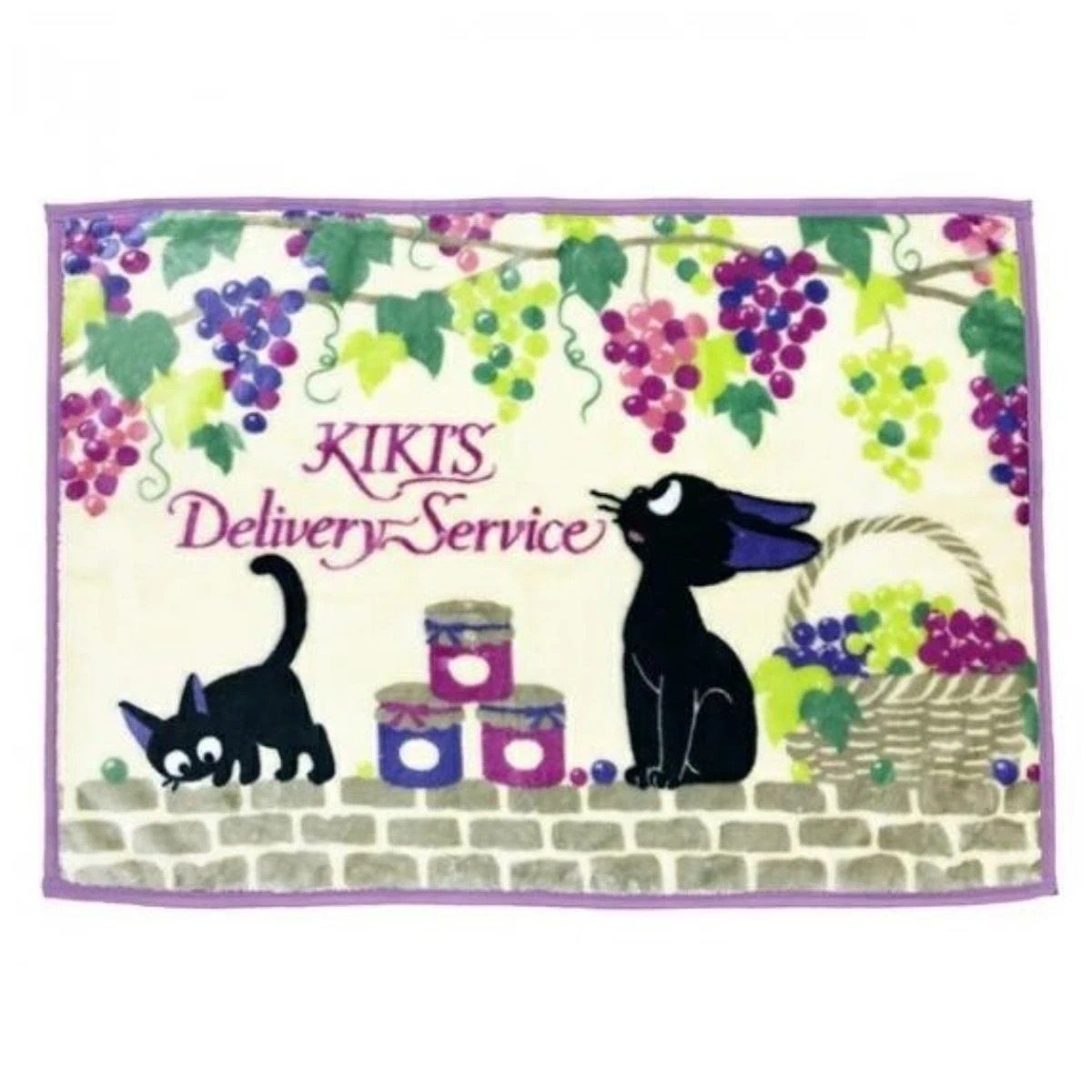 Ce plaid de qualité fabriqué par Marushin, spécialiste japonais des textiles sous licence, met en scène Jiji dans un décor coloré de grappes de raisin, pour un rendu à la fois charmant et décoratif.