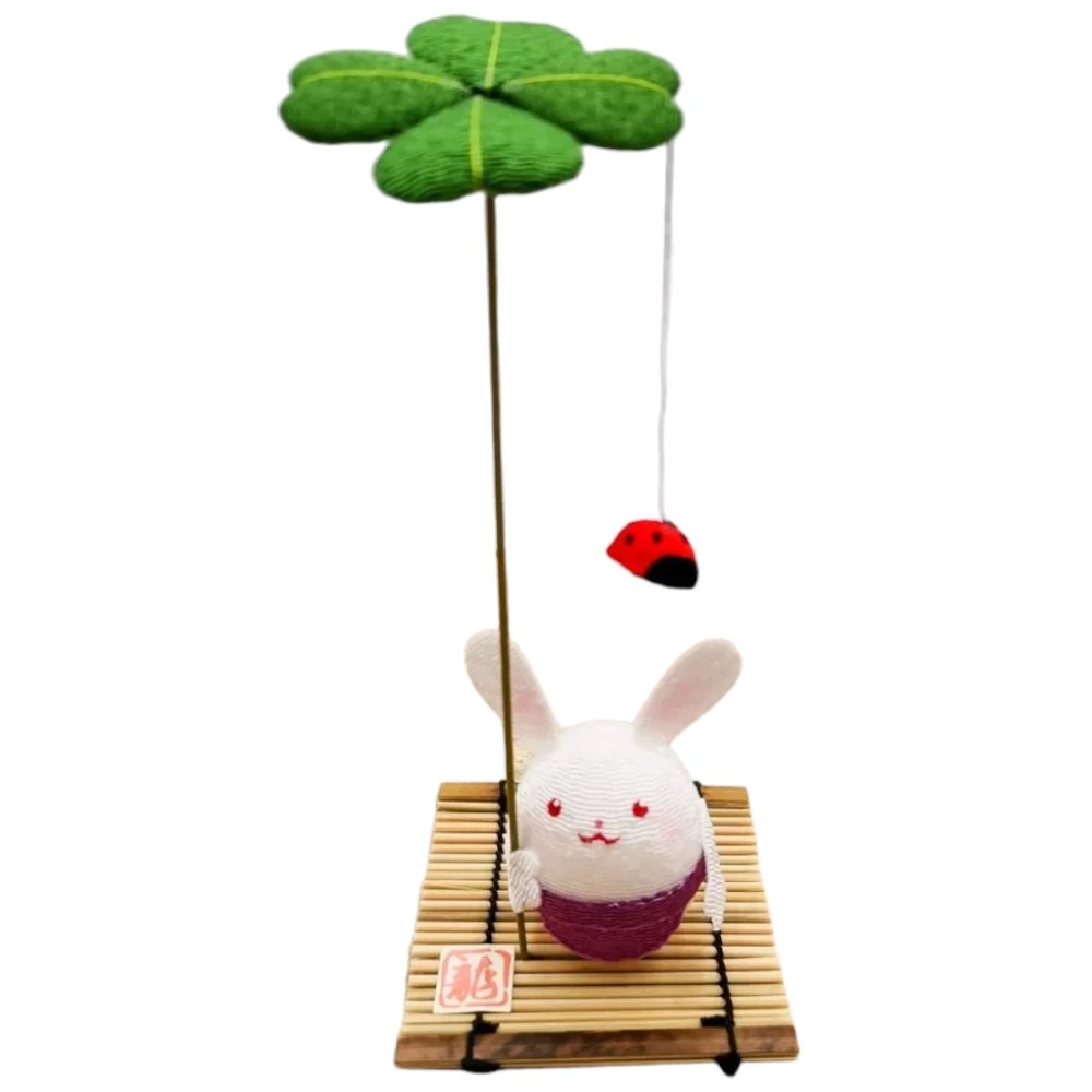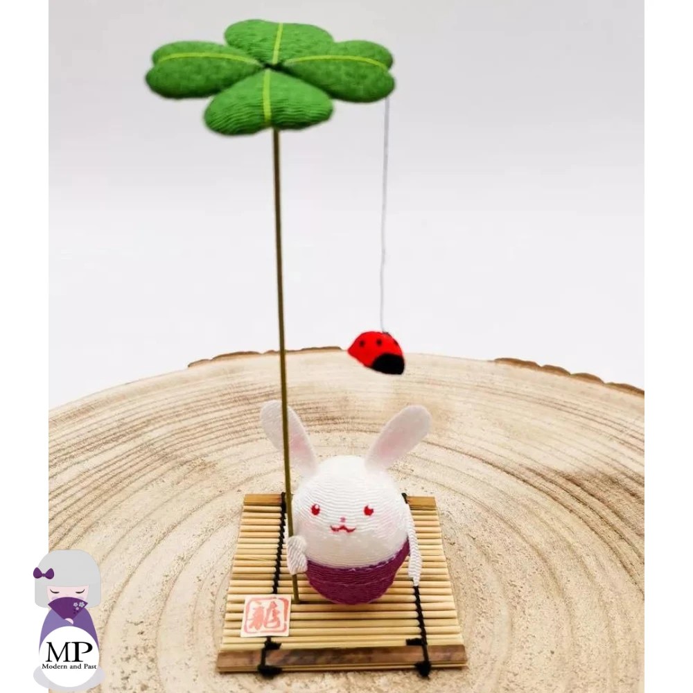 Le lapin, dans la culture japonaise, est associé au printemps et à l’éveil de la nature, tandis que le trèfle à quatre feuilles est universellement reconnu comme un porte-chance. Ensemble, ils forment un objet symbolique délicat et inspirant.