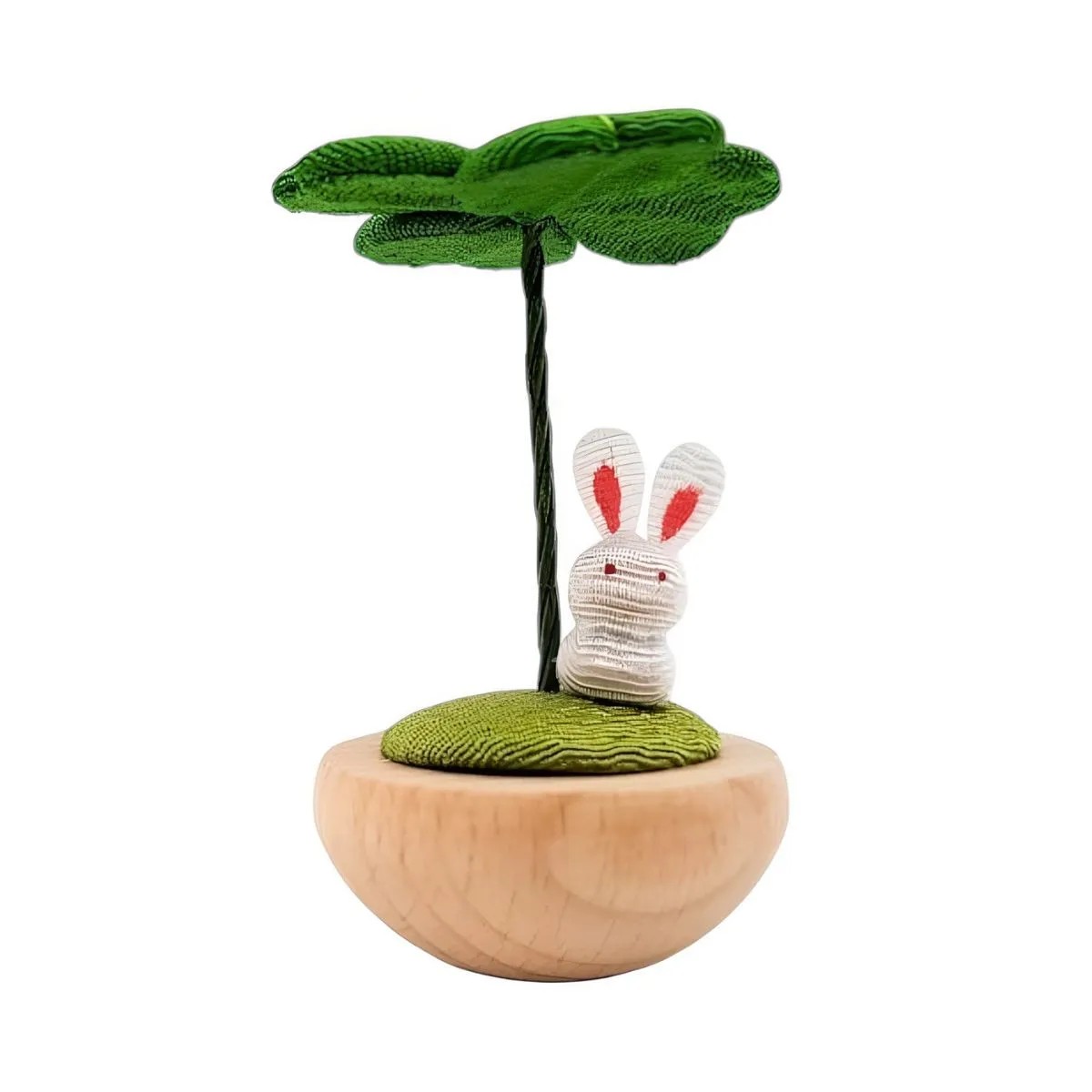 Ce porte-bonheur japonais artisanal représente un lapin placé sous un trèfle à quatre feuilles, symbole universel de chance et de protection. Fabriqué au Japon à la main en bois et tissu chirimen, ce culbuto délicatement équilibré apporte une touche de poésie à votre intérieur. Parfait pour un bureau, une étagère ou en idée cadeau, il incarne l’esprit bienveillant des objets traditionnels japonais.