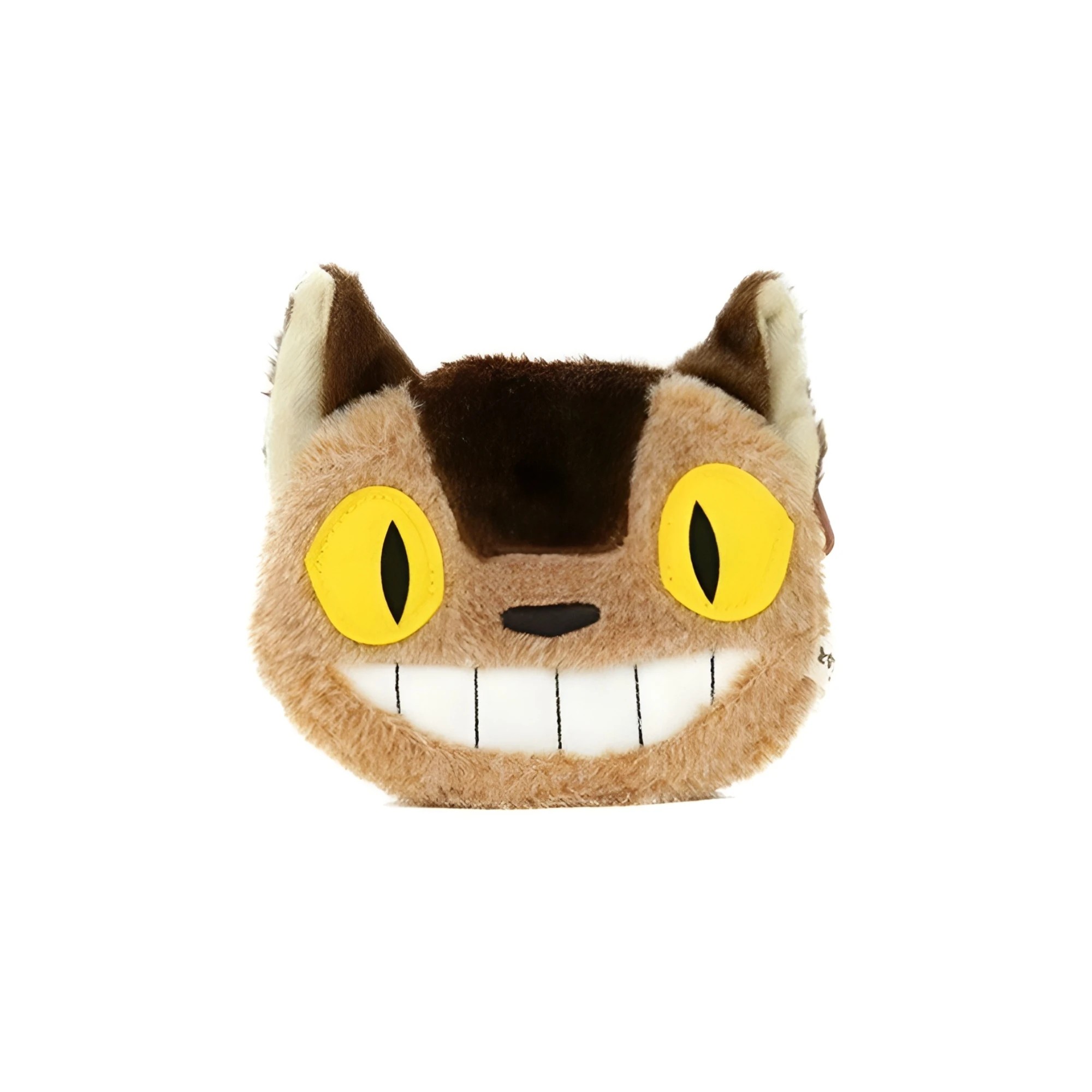 Ce porte-monnaie peluche Chatbus représente fidèlement la tête du célèbre Chatbus du film Mon voisin Totoro. Avec son large sourire et ses yeux dorés rappelant les phares du personnage, il capture toute la poésie et la fantaisie de l’univers Studio Ghibli.