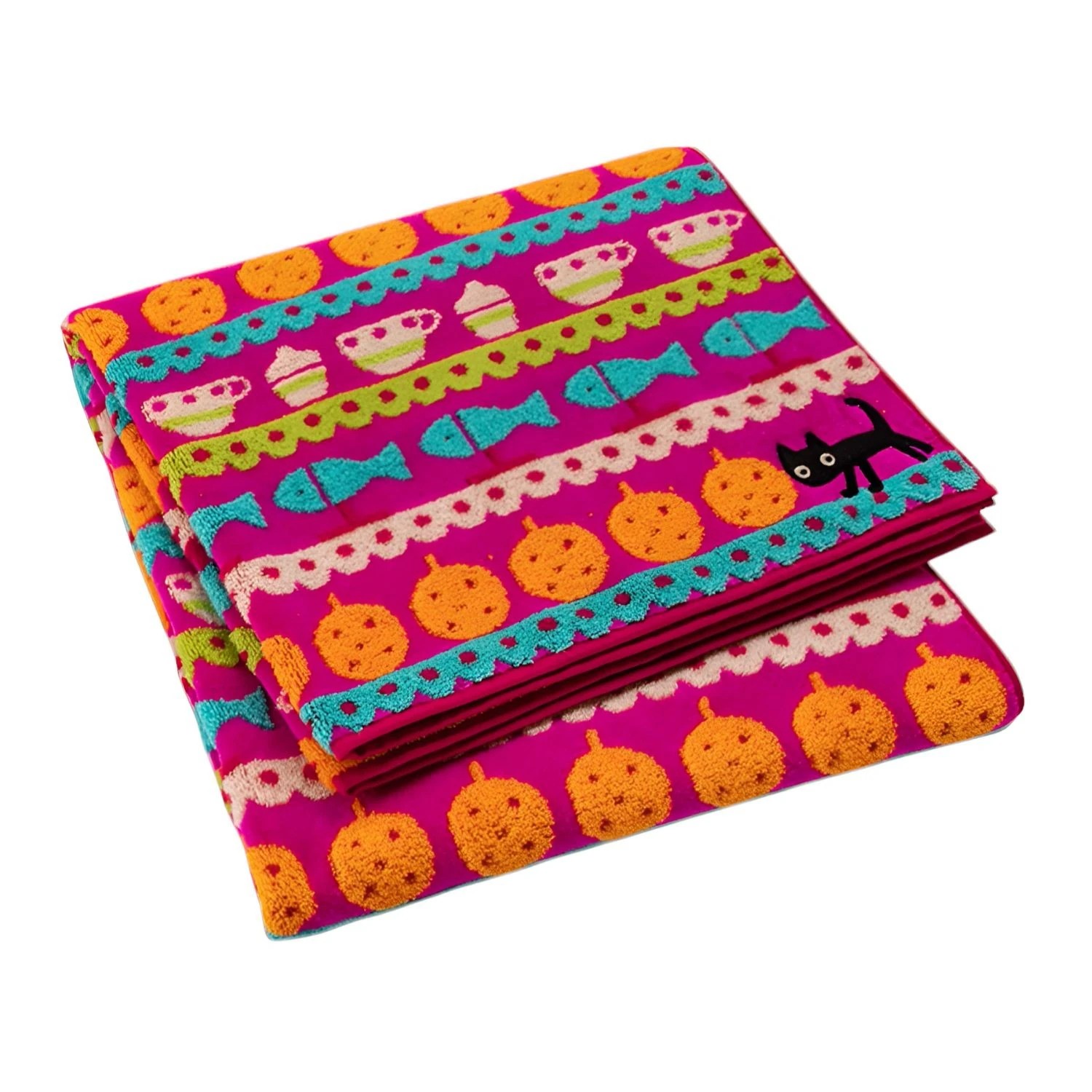 Modern and Past vous présente la serviette japonaise en coton rose de la collection MMBB (Mémé Bébé), créée par Atsuko Matano. Inspirée de l’univers espiègle et joyeux de la marque, cette serviette combine motifs de chats, poissons, tasses et formes ludiques dans un camaïeu de rose, orange et turquoise.