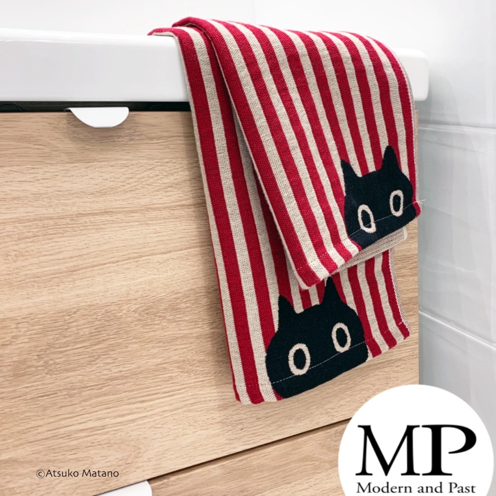 Le modèle MMST rouge combine le charme des rayures traditionnelles japonaises et la fantaisie du chat Mémé, symbole de bonne humeur et de douceur.