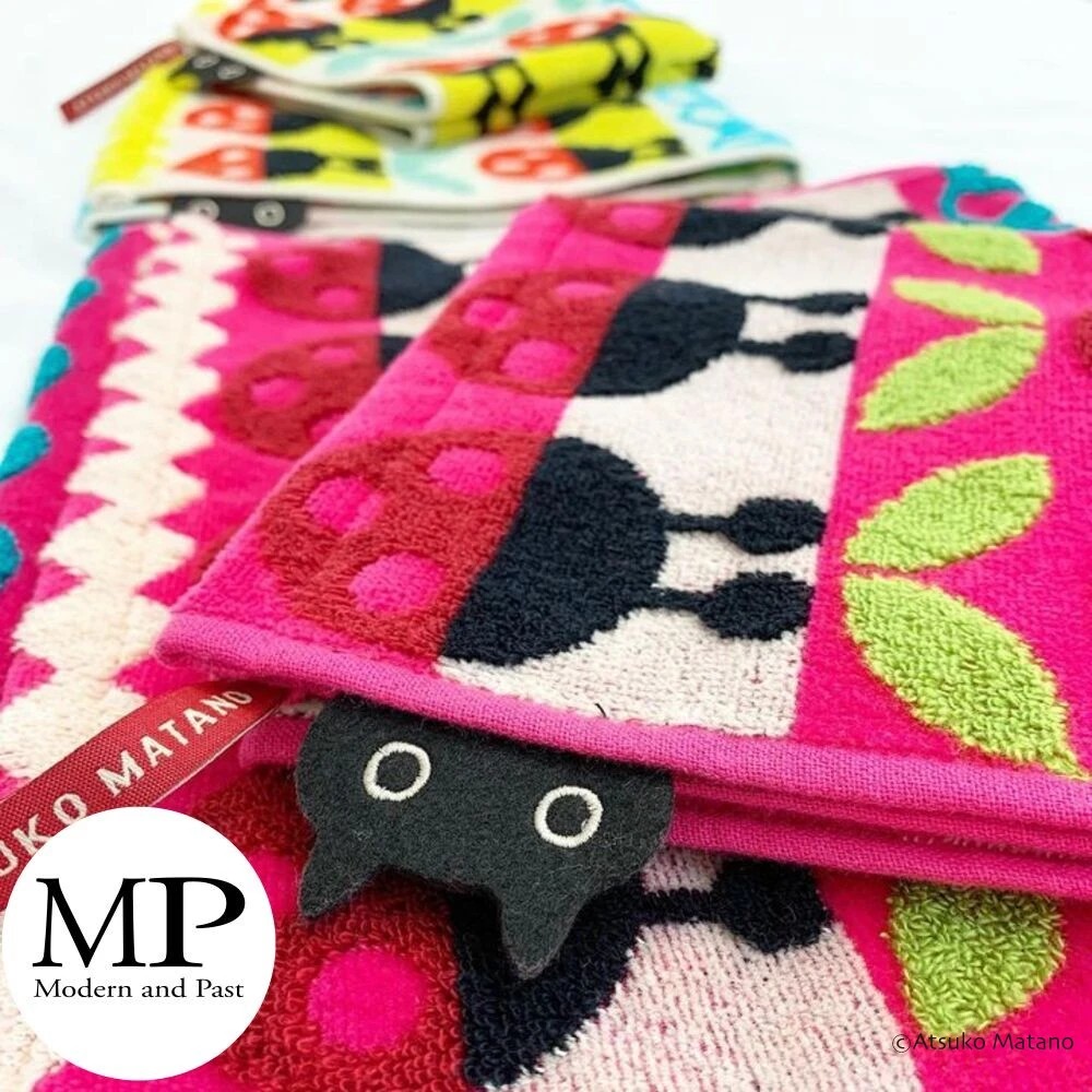 Ajoutez de la couleur et du caractère à votre intérieur avec cette serviette japonaise rose en coton éponge motif coccinelle Ladybug, imaginée par la célèbre illustratrice Atsuko Matano. Son design ludique met en scène de jolies coccinelles stylisées, disposées en rangées graphiques sur un fond rose et crème, emblématique de l’univers créatif et poétique de la créatrice japonaise.