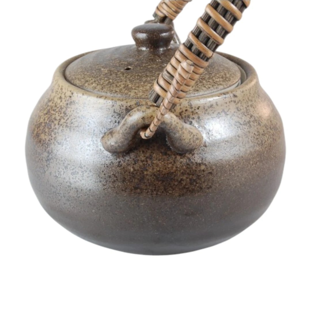 Découvrez la théière japonaise Dobin Bizen, façonnée en faïence japonaise par un artisan au Japon. Sa texture brute, son émaillage naturel et sa anse en bambou en font une pièce authentique et élégante, idéale pour sublimer la dégustation de vos thés.