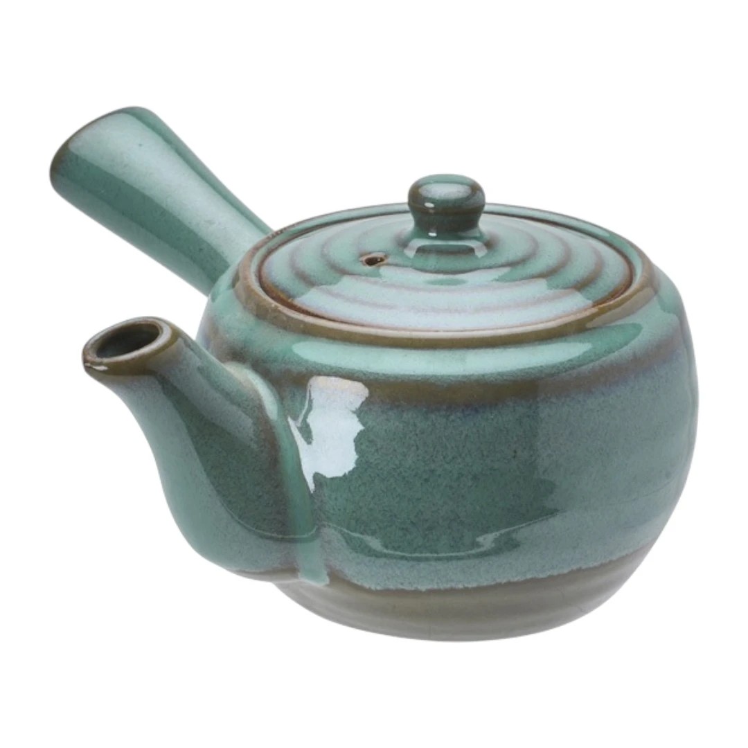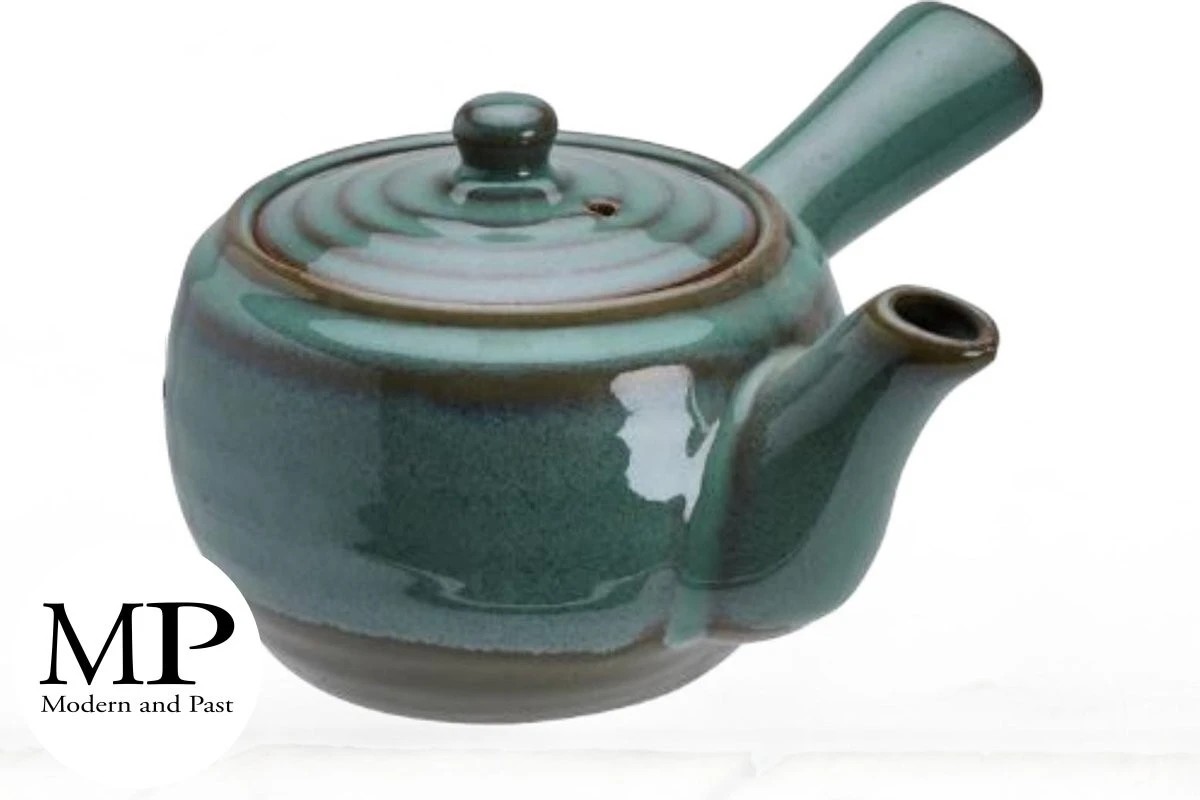 Fabriquée à la main au Japon, cette théière Kyusu en argile vert émeraude allie tradition et élégance.
