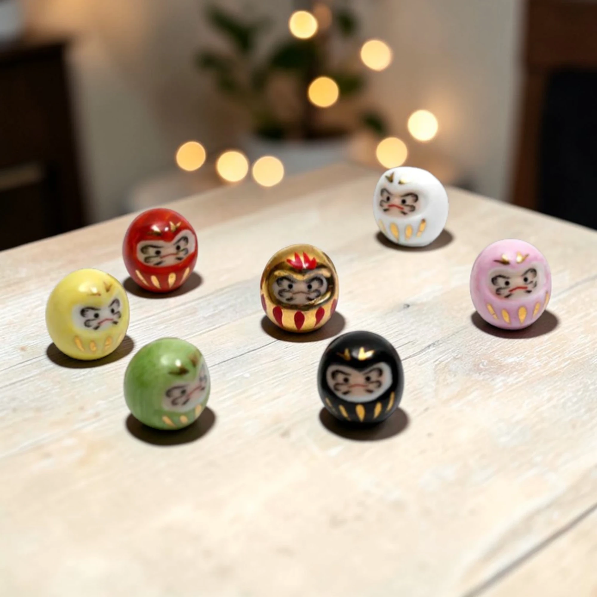 Disponible en 7 couleurs, ce tiny daruma permet de choisir la teinte correspondant le mieux à votre souhait ou à l’intention d’un cadeau.