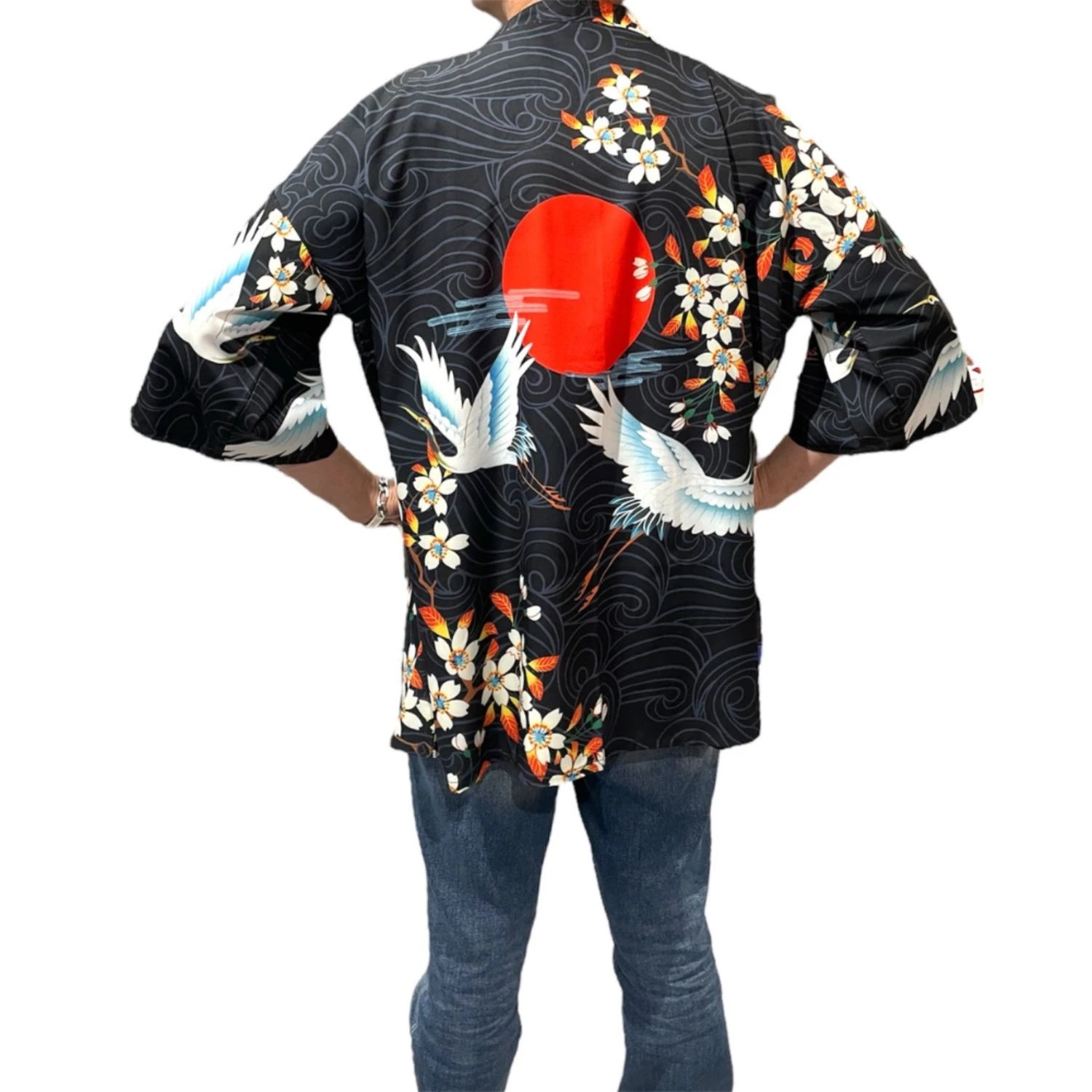 Cette veste kimono moderne s’inscrit dans la tendance Japanese Street Fashion, alliant style contemporain et symboles traditionnels.